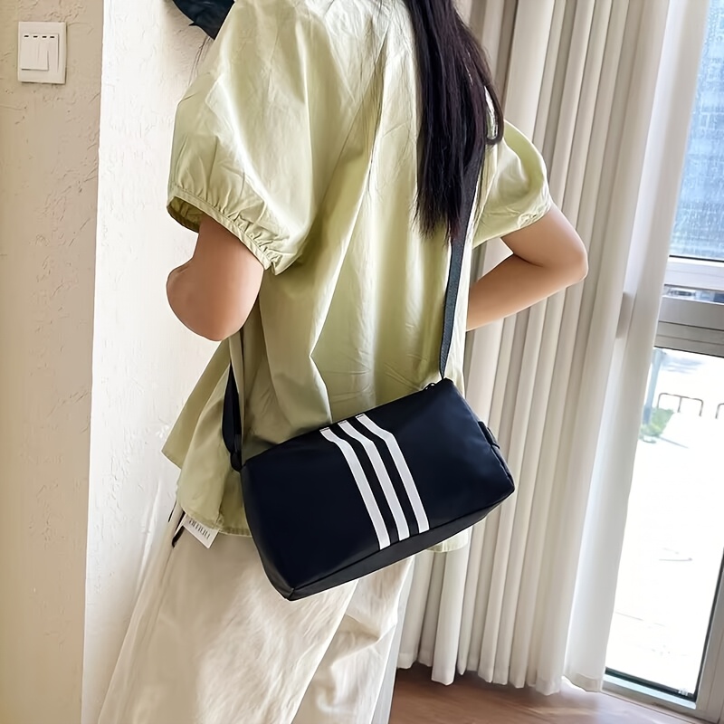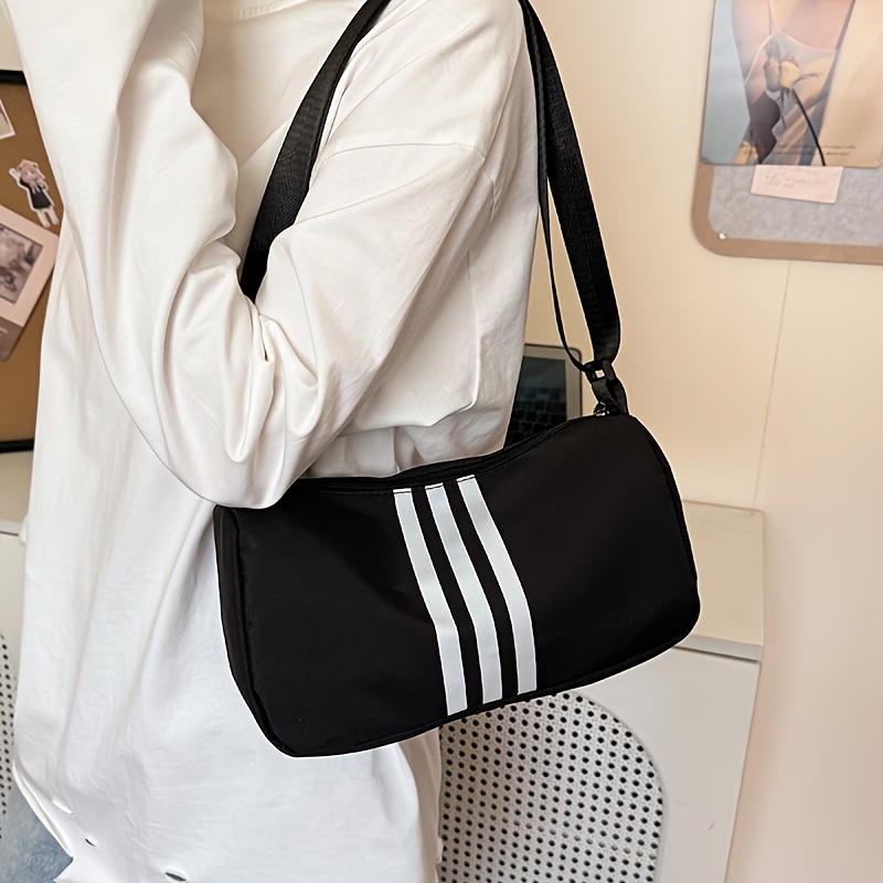სპორტული ფიტნეს ჩანთა (შავი, თეთრი სამი ზოლით)
