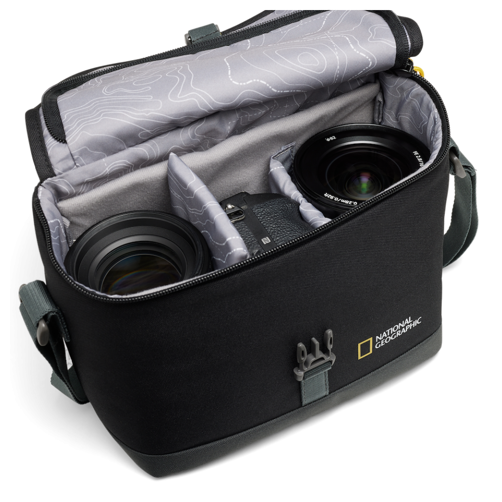 ფოტოაპარატის მხრის ჩანთა National Geographic (შავი, საშუალო ზომის)